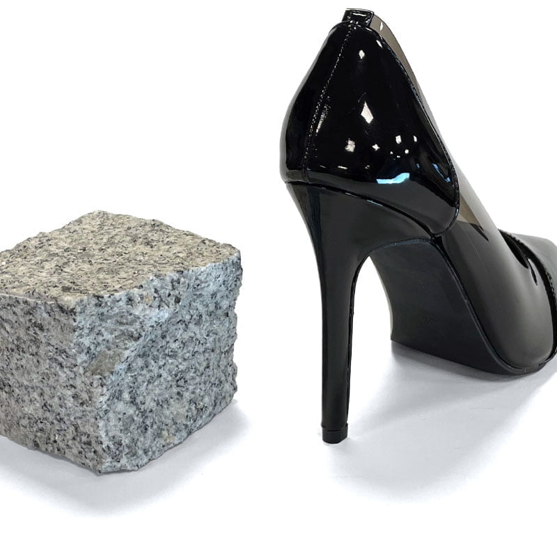 Dette produkt beskytter høje hæle mod ridser og andre grimme skader. Lappen er transparent med en selvklæbende bagside og fremstillet af et blødt PVC-materiale. Tykkelsen er på blot 0,2 mm, hvilket betyder at den er næsten usynlig når den er fastgjort. Højden er 50 mm og bredden er 60 mm.