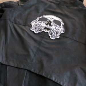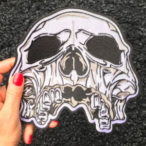 Smukt broderet strygemærke til jakken, blusen eller tasken. Motivet forestiller et kranium med målene 18 x 16,1 cm. Størrelsen på strygemærket sikrer, at det er optimalt at fastgøre på ryggen af en beklædningsgenstand. Patchen har en iron-on bagside der sikrer, at mærket er nemt at fastgøre. Pga. størrelsen anbefaler vi på det kraftigste, at du ligeledes syr mærket fast med nogle sting for at sikre, at det sidder godt fast.