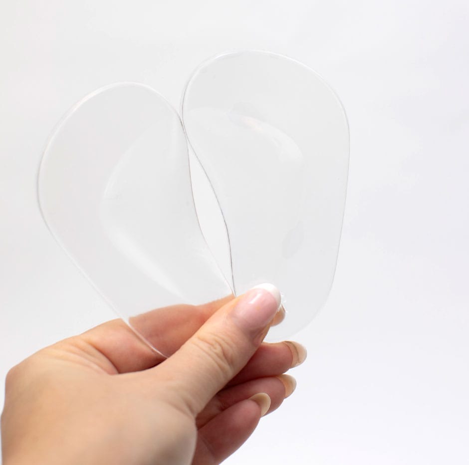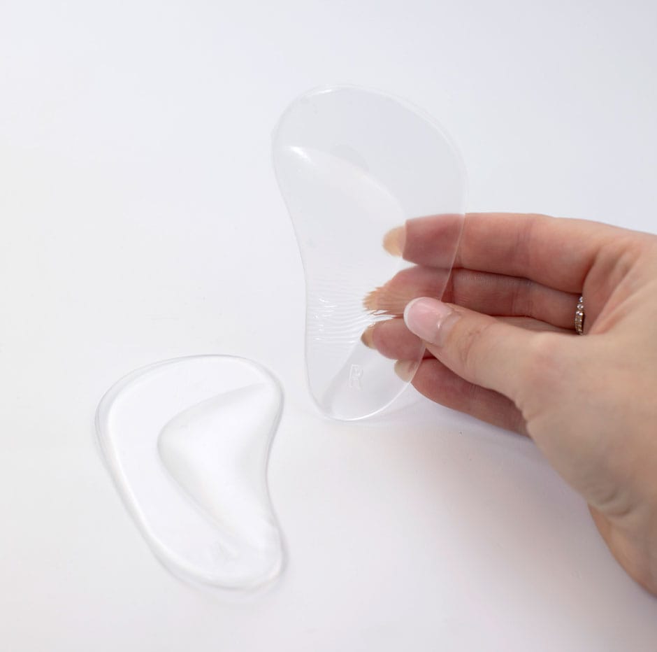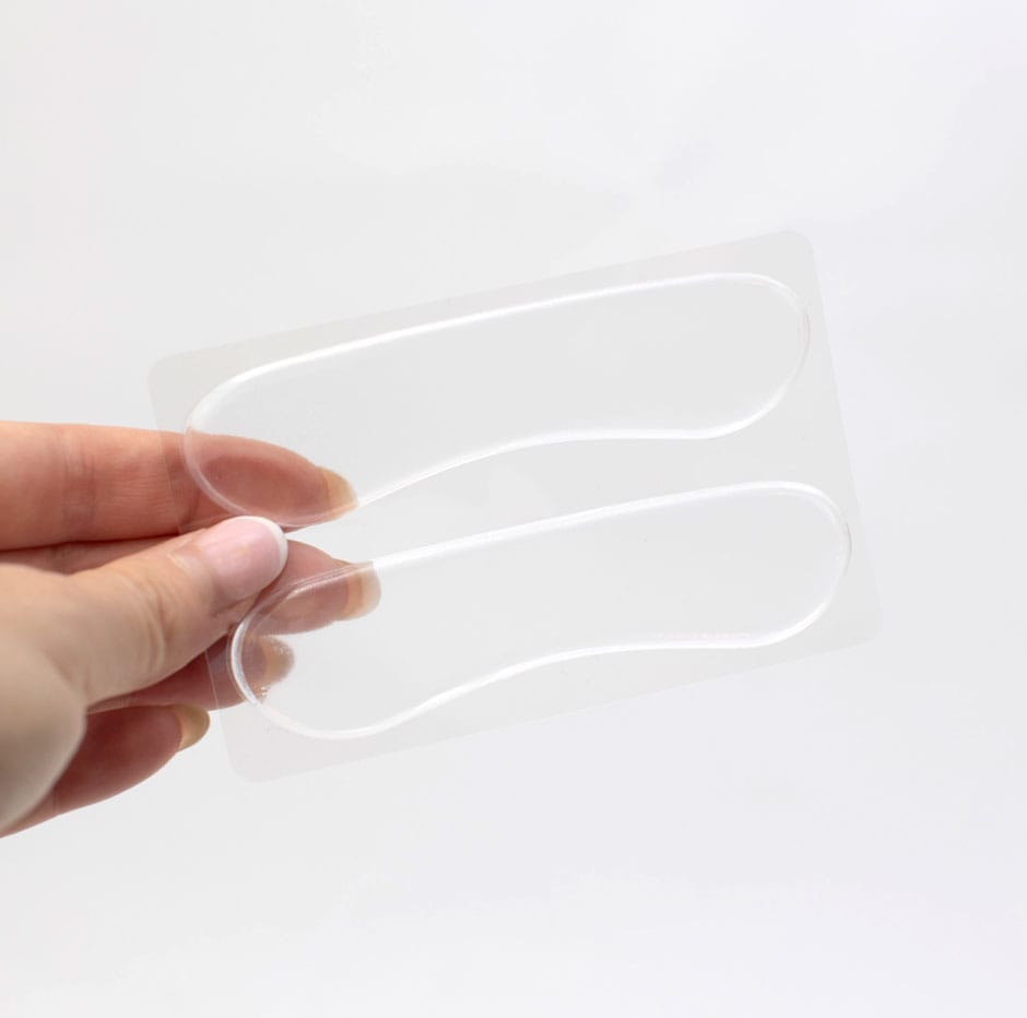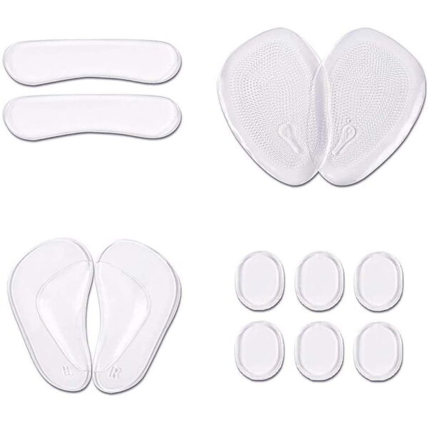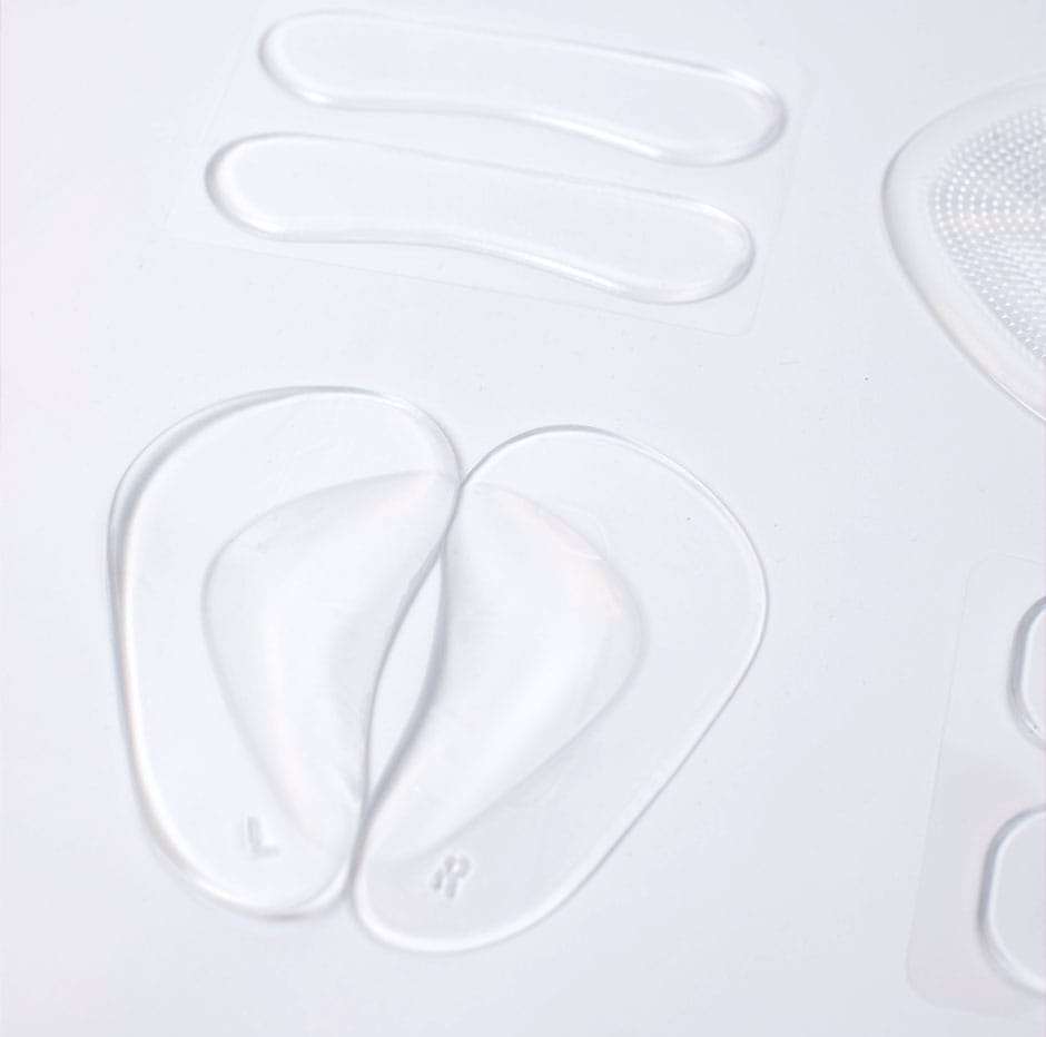Her får du en pakke selvklæbende gelépuder i flere varianter, der gør skoene mere behagelige at have på. Puderne af gelé fastgøres på sko med glatte overflader.