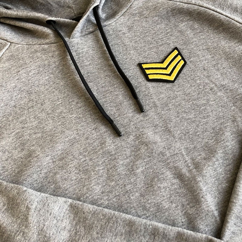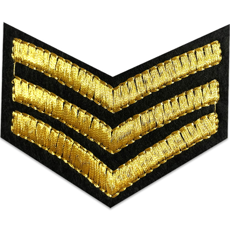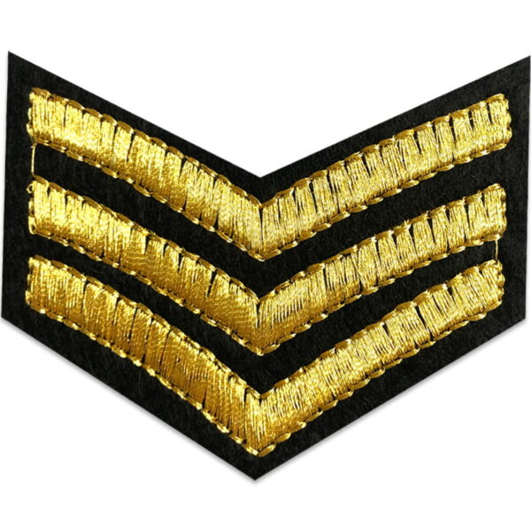 Motiv der forestiller en klassisk gradsbetegnelse hvis bagside stryges fast på stoffet. Der findes mange forskellige militærmærker men kun få som dette. Stryg gradsbetegnelsen fast eller brug mærket til at lappe eller reparere f.eks. en taske eller kasket. Størrelsen på mærket er ca. 6,9 x 5,3 cm.
