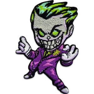 Mega fed joker boy der fastgøres på tøjet eller andre stoffer ved hjælp af varme. Denne joker boy er broderet og har en størrelse på 7 x 4,8 cm. Bagsiden er forsynet med smeltelim, der sikrer at du nemt kan fastgøre jokeren med varme på tøj eller andre stoffer.