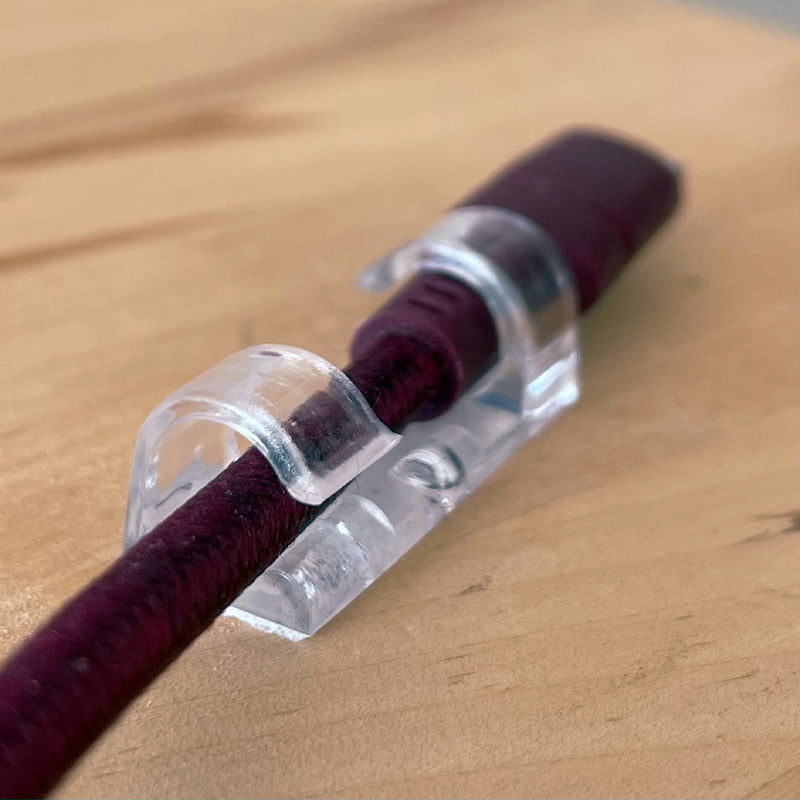 Enkle og super praktiske kabelholdere som hjælper dig med at holde styr på alt fra mobilopladere til f.eks. computerledninger. Holderne er transparente og fås i to størrelser. Udover selve holderne indeholder pakken et ark med dobbeltklæbende puder med lim af super høj kvalitet. Disse holdere kan fastgøres på de fleste slags overflader. På produktbilledet vises den mindre variant af holderen.
