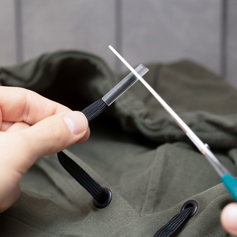 Med disse små krympeflex-stykker kan du nemt reparere eller forkorte snørebånd, der er blevet slidte eller er for lange. Klip den ødelagte del af, eller kort snørebåndet ned til en passende længde, træk en plastikcylinder på og varm forsigtigt op – i varmt vand, med en varmepistol eller med en stormlighter på lidt afstand. Efter 15–20 sekunder krymper plasten jævnt om snørebåndet og danner en pæn og holdbar afslutning.