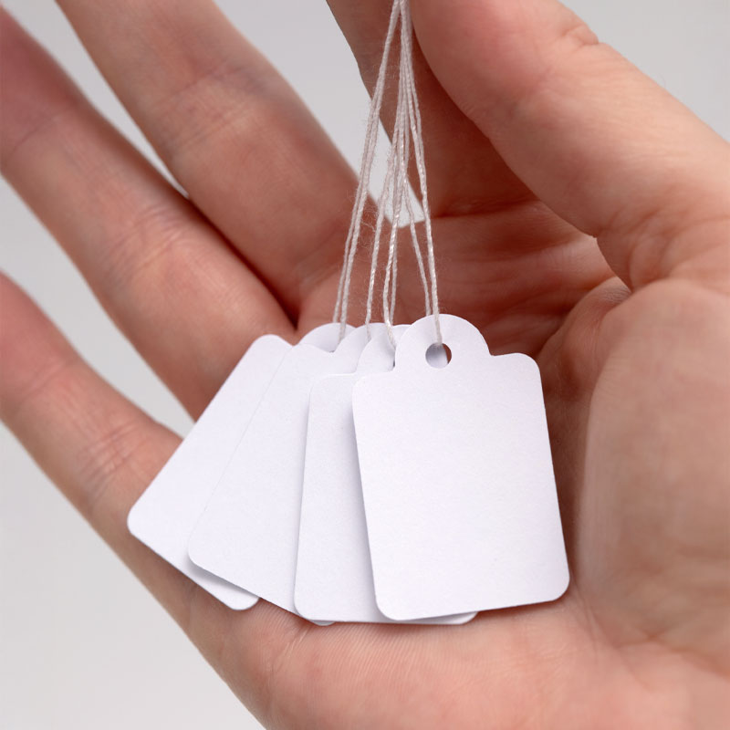 Det praktiske snor gør det nemt at fastgøre mærkerne på alt fra tøj og accessories til småting og boligindretning. Dette produkt er perfekt til dig, der ønsker en tydelig præsentation af dine produkter, samtidig med at du gør det let for dine kunder at se priser og information.