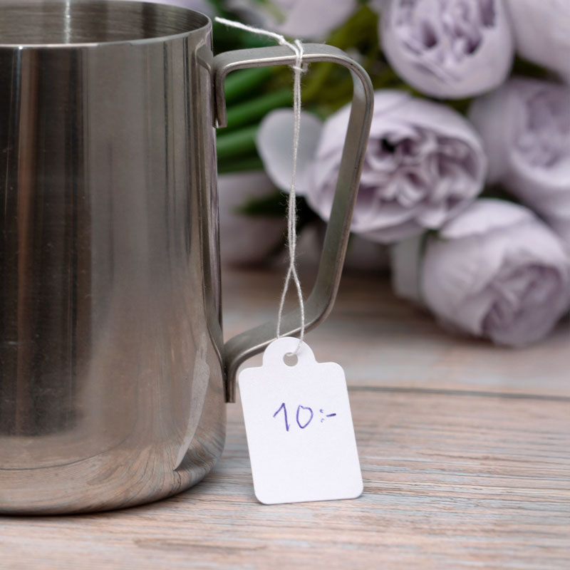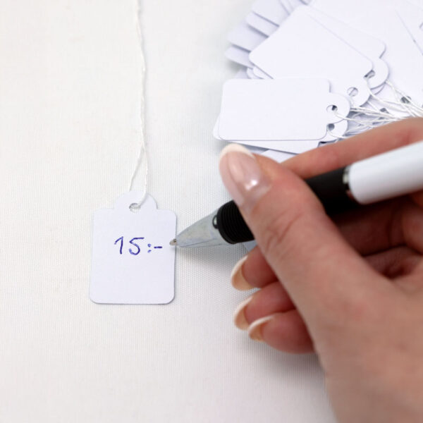 Skal du sælge på loppemarked, messe eller holde udsalg? Prismærker med snor er en smart og elegant løsning til nemt at mærke dine varer. Mærkerne er lette at skrive på – uanset om du bruger kuglepen, tusch eller markeringspen.