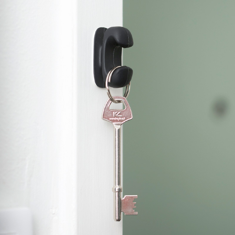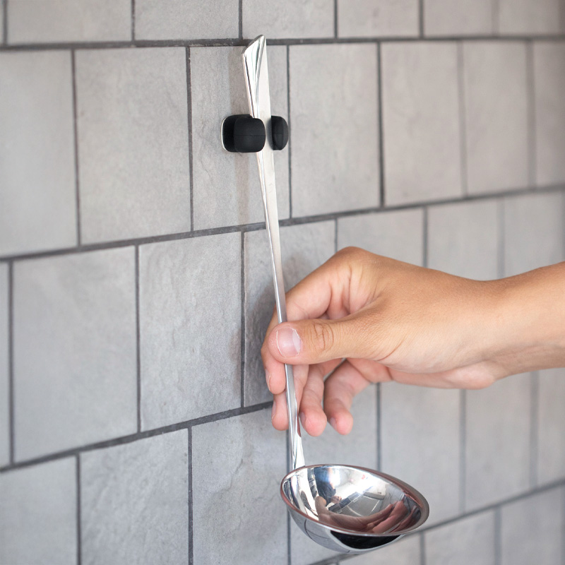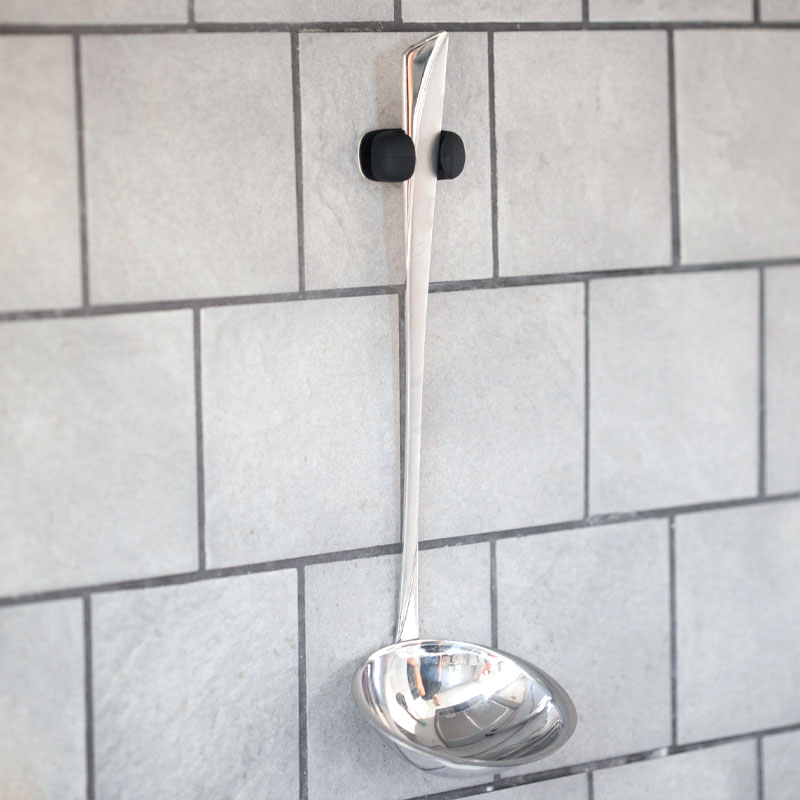 En smart lille holder, der hjælper dig med at holde orden i køkkenet. Sæt den nemt på væggen eller indersiden af et skab, og brug den til grydeskeer, skeer, ledninger eller andre småredskaber. Holderen er selvklæbende og fremstillet i fleksibelt silikone, hvilket gør den både slidstærk og let at bruge. I pakken medfølger 2 stk.