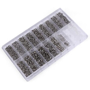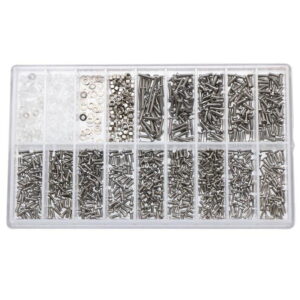 Skal du reparere et ur eller finde den rigtige skrue til dine briller? Så er denne kasse med tilbehør lige noget for dig. I kassen finder du mange forskellige skrueskiver, møtrikker og skruer i flere størrelser. Takket være antallet af varianter bør du være i stand til at finde den rigtige del til dit behov. Indholdet passer til alt fra almindelige briller til solbriller, men kan også fungere på andre elektroniske enheder eksempelvis legetøj og ure. Værktøj medfølger.