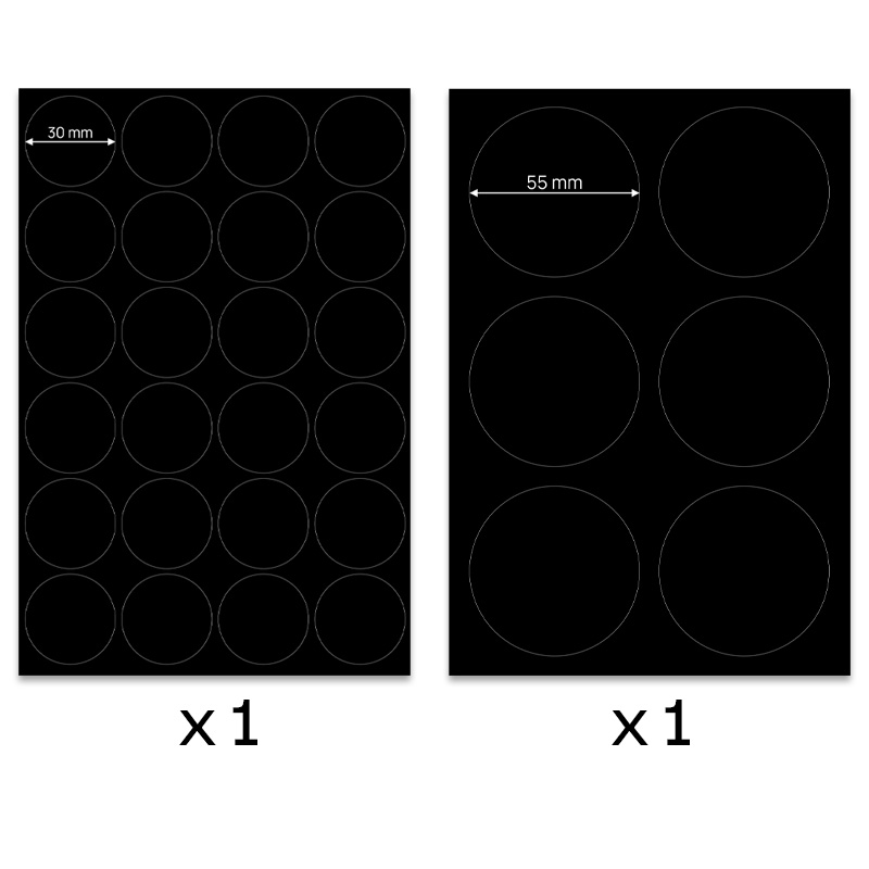 - 1 ark med 20 små runde lapper (3 cm)
